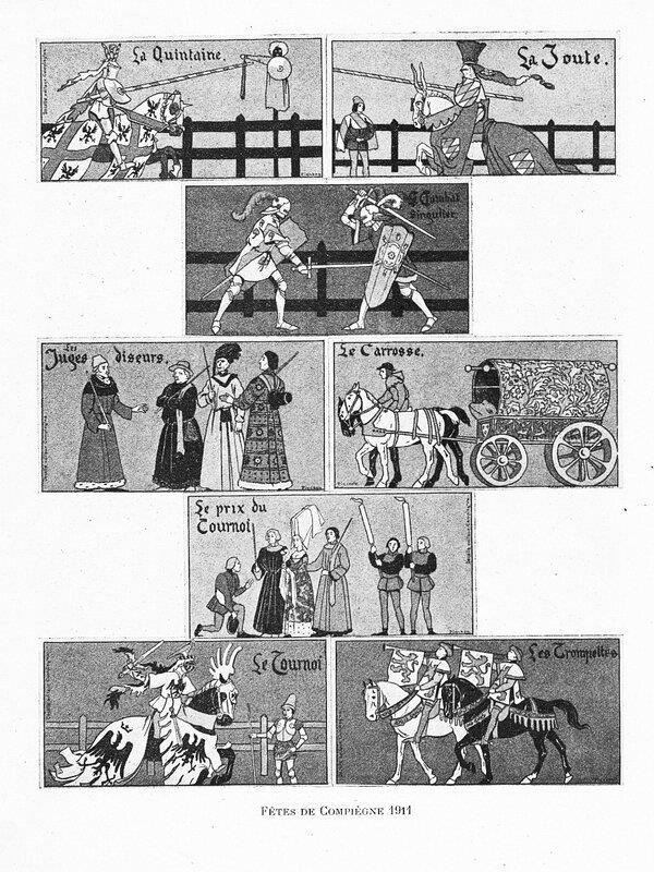 Рисунок от 1911 года, когда в связи с провозглашением Жанны д'Арк блаженной, 28 мая и 5 июня 1911 года в Компьени был воспроизведён этот рыцарский турнир.