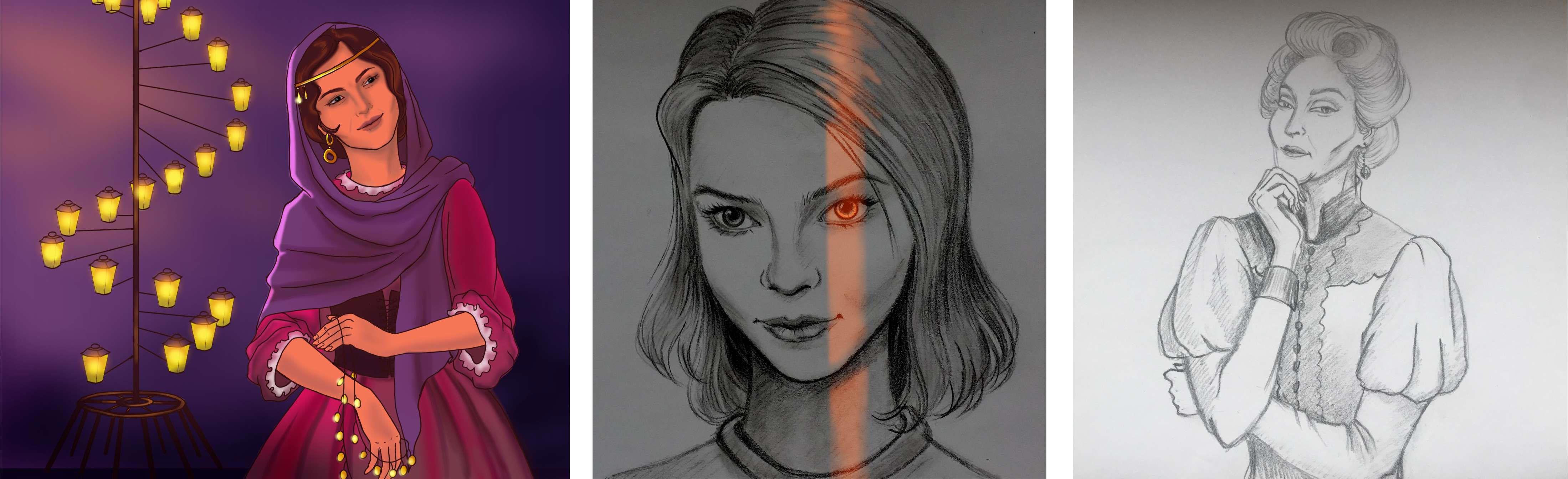 Среди рисунков есть портреты персонажей: