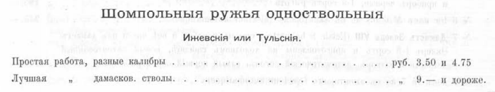 Винтовку Бердана, комиссионную или новую в гражданском исполнении можно было купить по цене от 10 до 15 рублей, Мартини (гражданский вариант английской Мартини-Генри под менее мощные патроны) от 15 рублей (но это под патрон .22/100, более известный как .22 короткий). Мартини в зулусобойном калибре 577/450 обошелся бы уже примерно в 30 рублей.