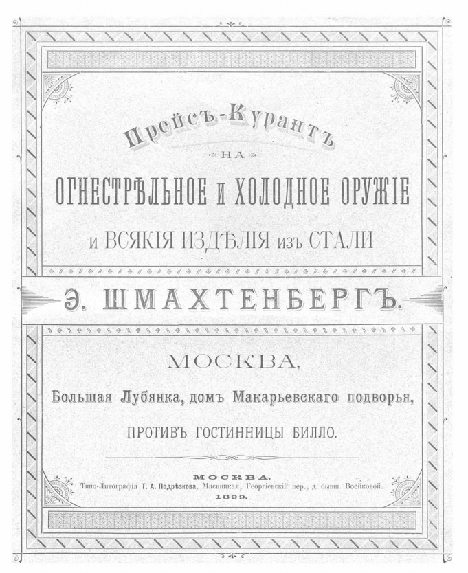 Итак, у нас в руках Прейсъ-Курантъ Магазина Э. Шмахтенберга 1899.