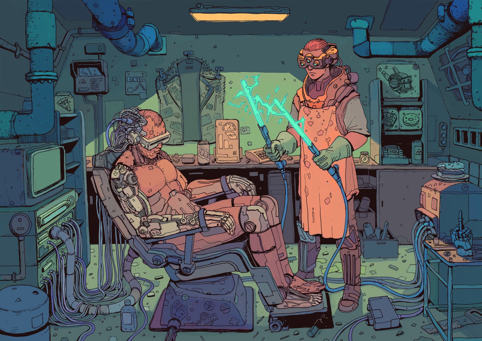 Автор: Дмитрий ПономарёвЕсть мнение, что киберпанк — мёртв. Сиречь нынче этот субжанр фантастики — непонятен, забыт и (почти) никому не интересен. А есть и противоположное мнение, что киберпанк по-прежнему живее всех живых. Так или иначе, у этого направления были и будут пусть немногочисленные, но поклонники. И среди них, что радует, есть профессиональные художники-иллюстраторы.