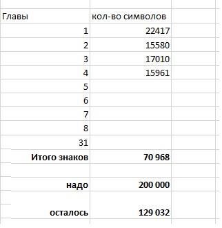Вот, видно что мне осталось "всего-то" написать 129 тыс знаков до конца недели