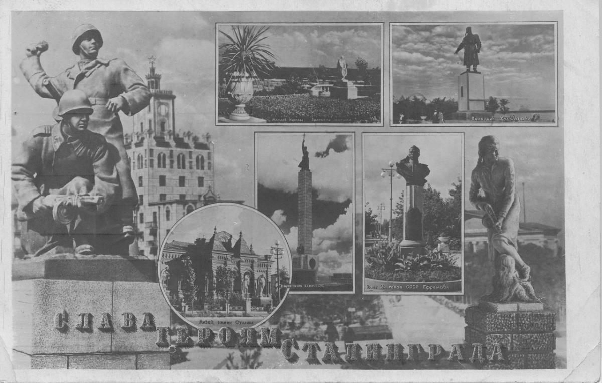 Верхний ряд, справа - памятник Герою Советского Союза Виктору Степановичу Хользунову на втором постаменте (первый был разрушен во время Сталинградской Битвы, а третий появился в середине шестидесятых) - https://author.today/post/132969