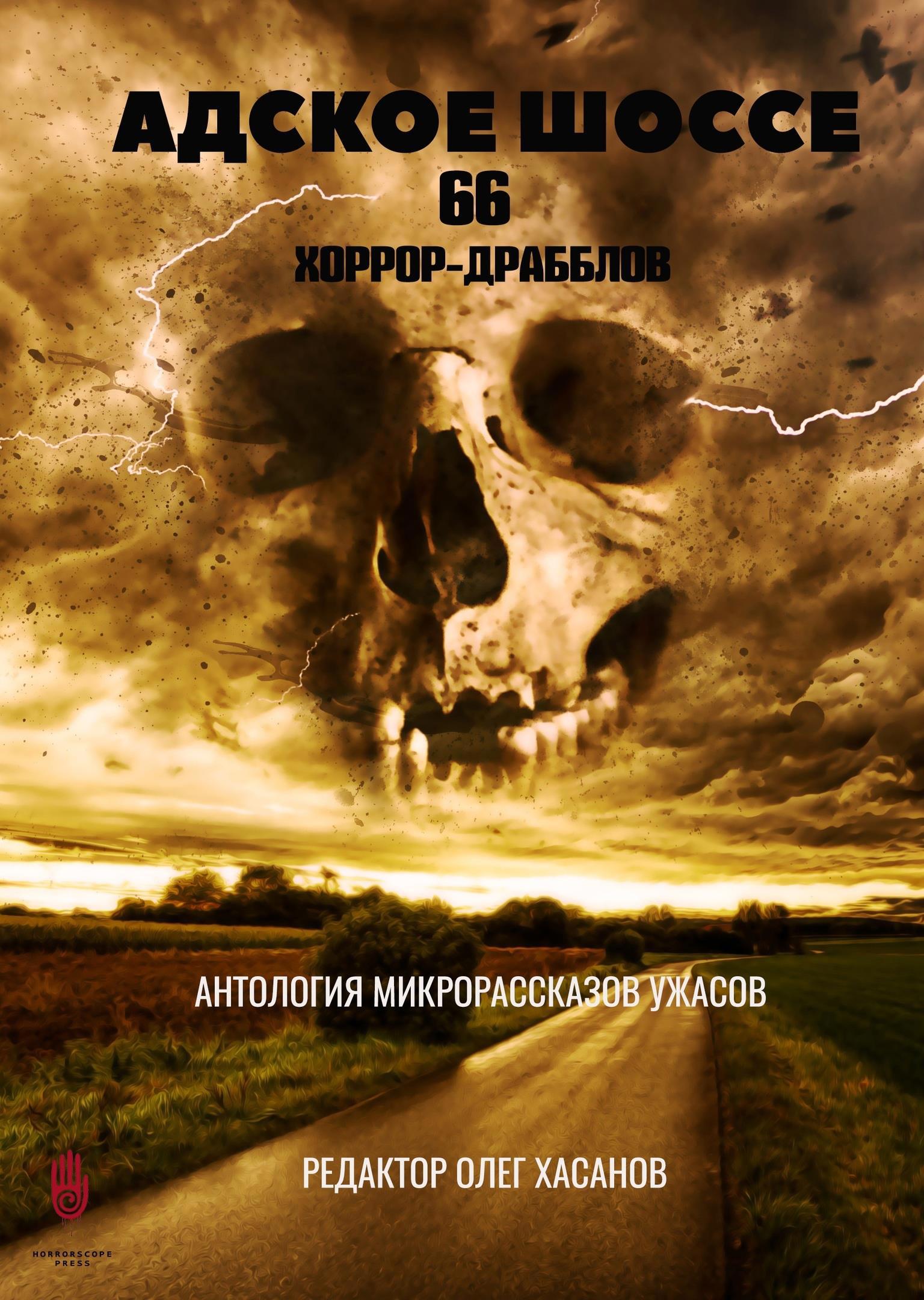 Автор: Сидоров Артем ВладимировичПрошел отбор в сборник микропрозы "Адское шоссе", опять же издательства Хоррорскоп. Книга содержит 66 драбблов - это такой забавный формат маленьких рассказов. ТЗ для автора - уложить в 100 слов хоррор на тему шоссе, при этом жанр подразумевает "двойное дно" или неожиданную развязку. От меня там драббл "Холодная кровь".