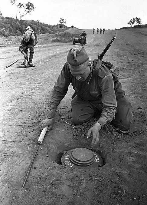 Уже к 1944 году наши сапёры обезвреживали до 90% немецких закладок не уступая в мастерстве специалистам вермахта. Ура сапёрам советской армии.