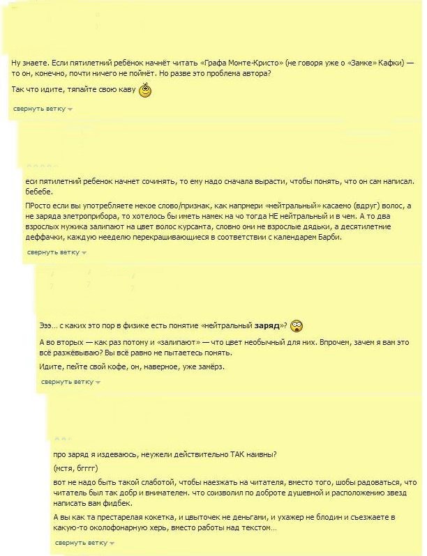 Я просто оставлю несколько скринов, котятки. Скринов, сделанных с переписки на другом сайте и без указания имен, хотя, конечно манеру речи одного из собеседников не узнать трудно. Типо претензии, типо к тексту... пусть каждый выводы делает сам для себя - откуда растут легенды