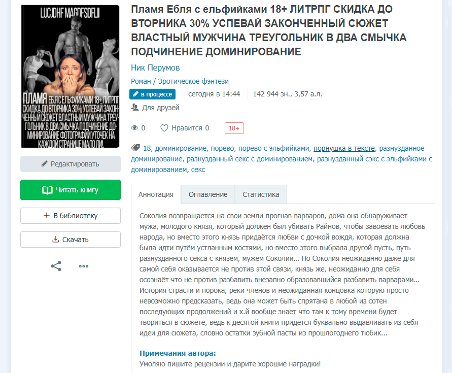 «Пламя Ебля с ельфийками 18+ ЛИТРПГ СКИДКА ДО ВТОРНИКА 30% УСПЕВАЙ ЗАКОНЧЕННЫЙ СЮЖЕТ ВЛАСТНЫЙ МУЖЧИНА ТРЕУГОЛЬНИК В ДВА СМЫЧКА ПОДЧИНЕНИЕ ДОМИНИРОВАНИЕ фотографии уточек на каждой странице мало ли!»