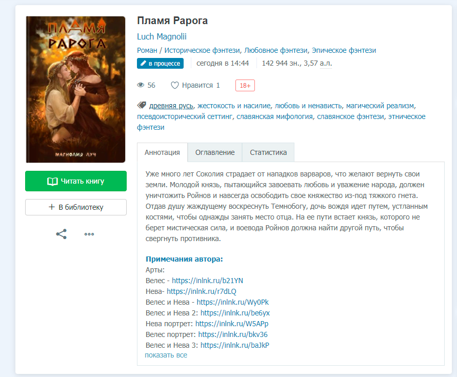 Сразу по аннотации можно понять: нас ждёт драма полная страданий, ведущая к катарсису. Внимательный читатель заметит, что в аннотации, кроме страданий и катарсиса, фигурируют также сражения и войны, то есть мы имеем дело не просто с «драмой», а с «военной драмой», а катарсис намекает на эпичность, так что это «эпическая военная драма». Но самое главное, в аннотации встречается слово любовь, что замечательно, ведь значит, с названием я угадал, и в книге нас ждёт не «эпическая военная драма», а «эпическая военная 18+ ЛИТРПГ секс-драма с доминированием».