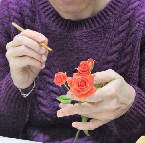 К сожалению, фото барышни нет, но однажды я это исправлю, лишь дождусь, когда сестренка наконец доделает ремонт и достанет куклу из коробки. Зато есть фотография моей розы из самозастывайки
