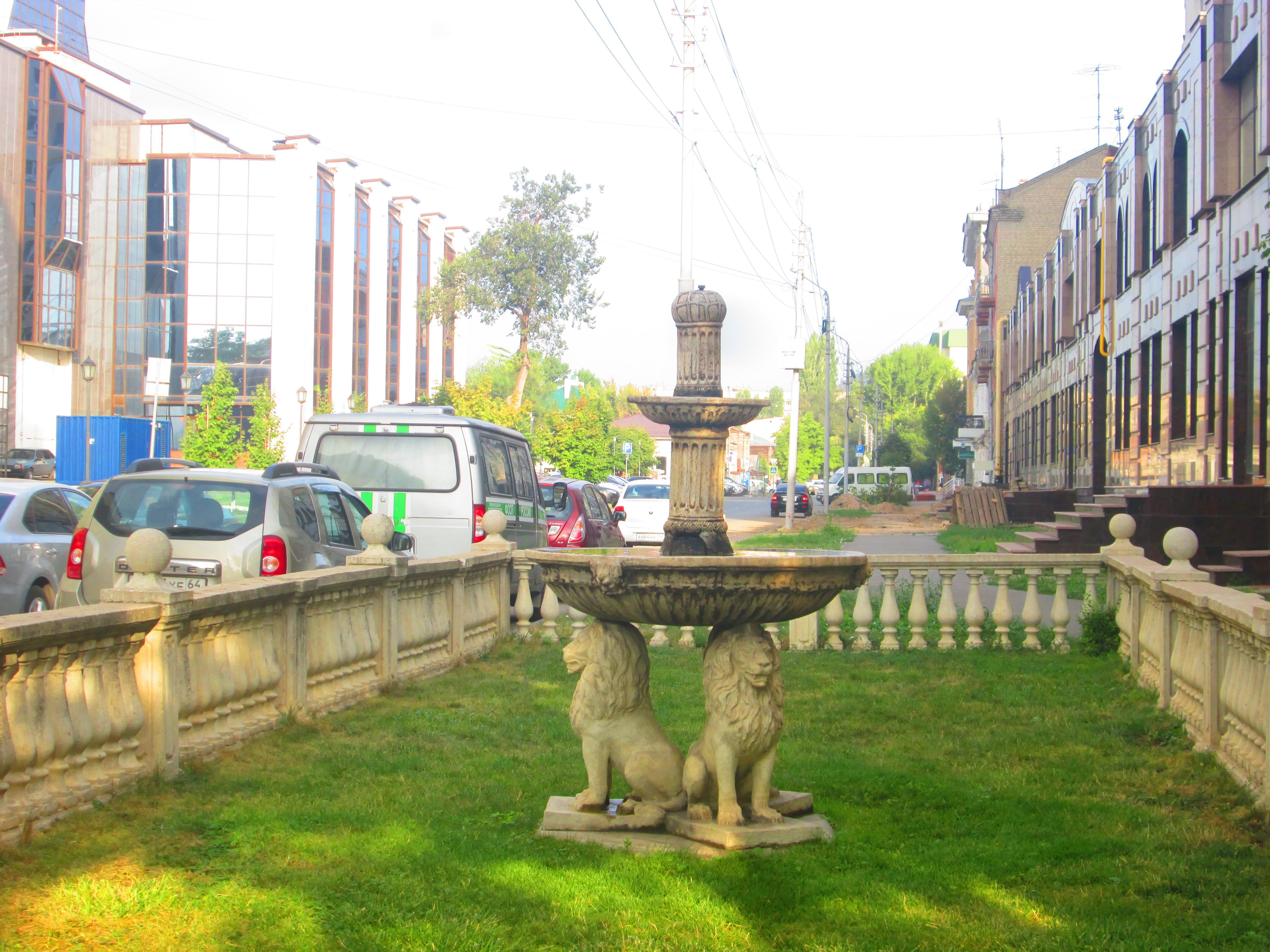 Милый фонтан с деревянной рыбой-стерлядью — символом города