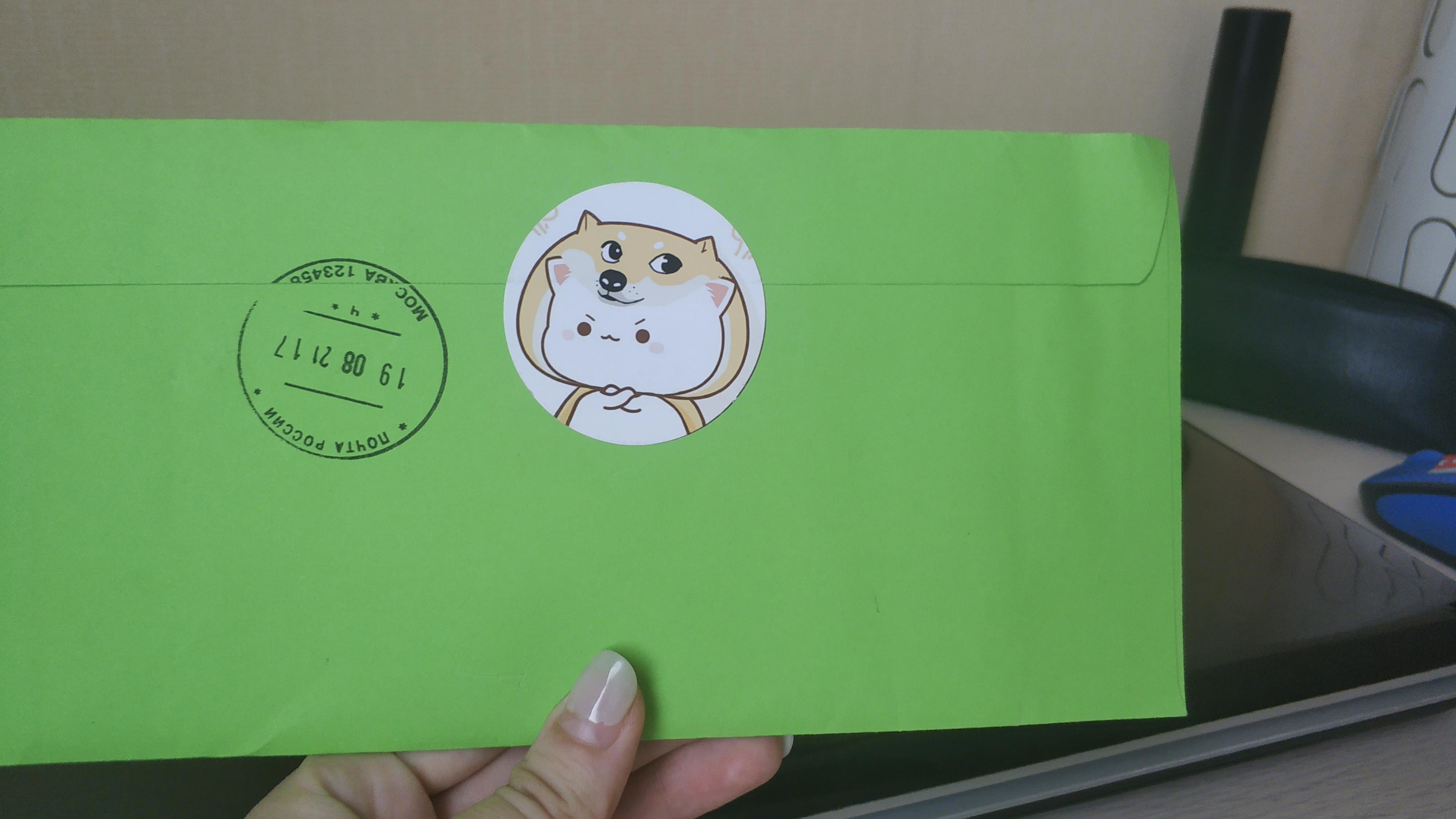 Автор: Дарья ДемидоваПисьмоооооо! Я на почту хожу раз пятилетку, так что поход в отделение был волнительным. Пройдя мимо витрины с макарошками и сгущенкой, я оказалась у окошка, где мне вручили зелененький конвертик с забавной наклейкой.