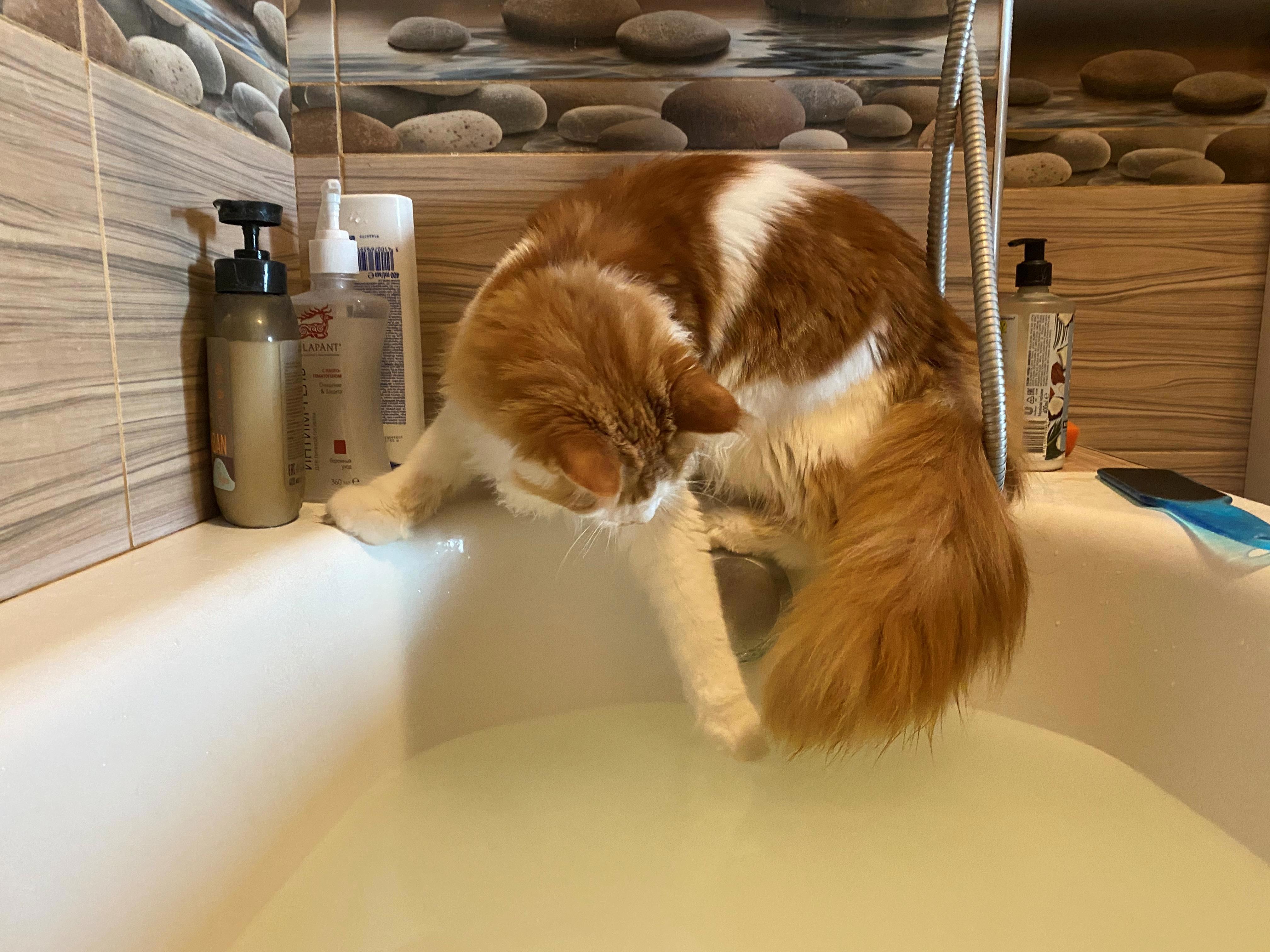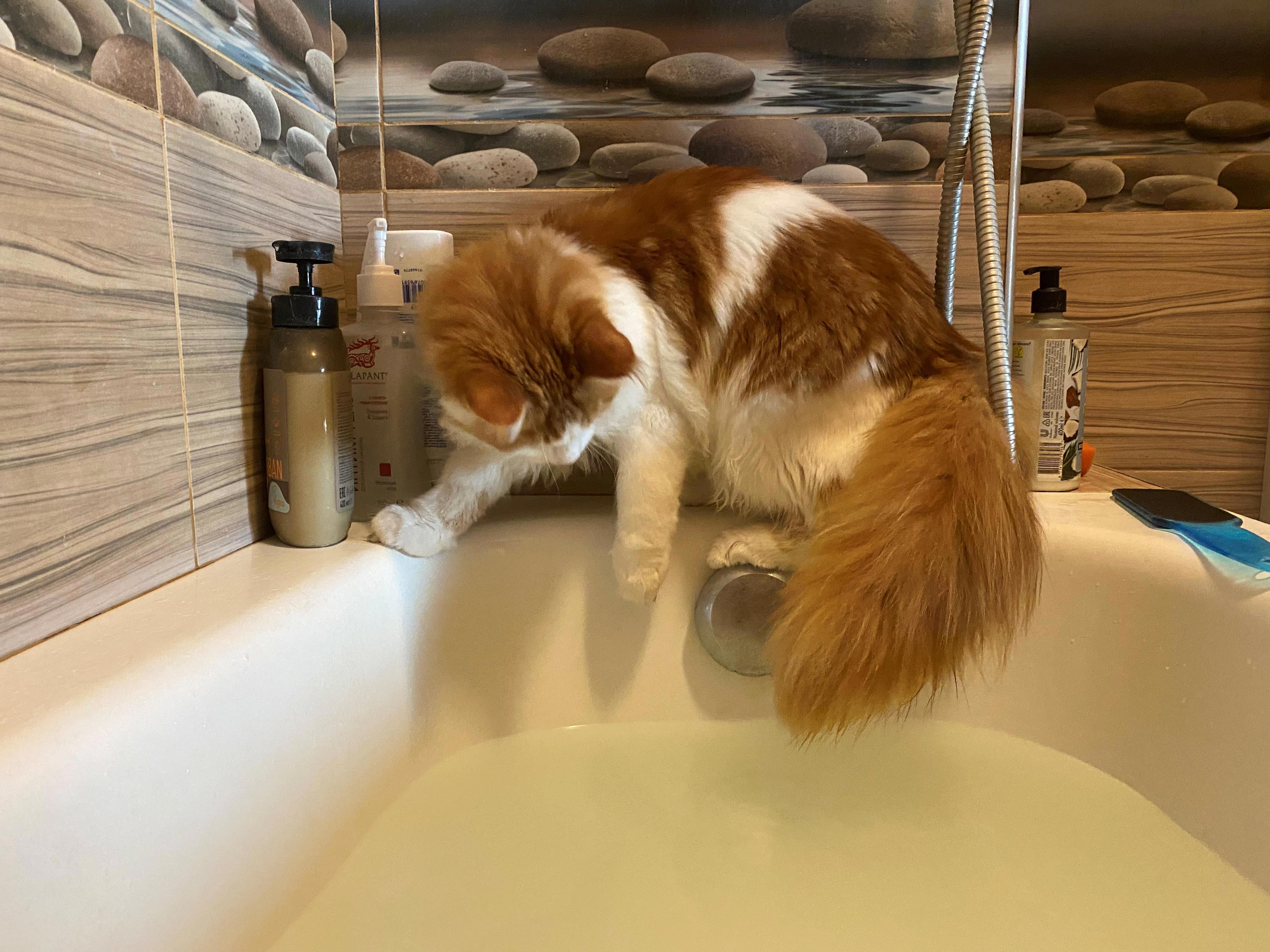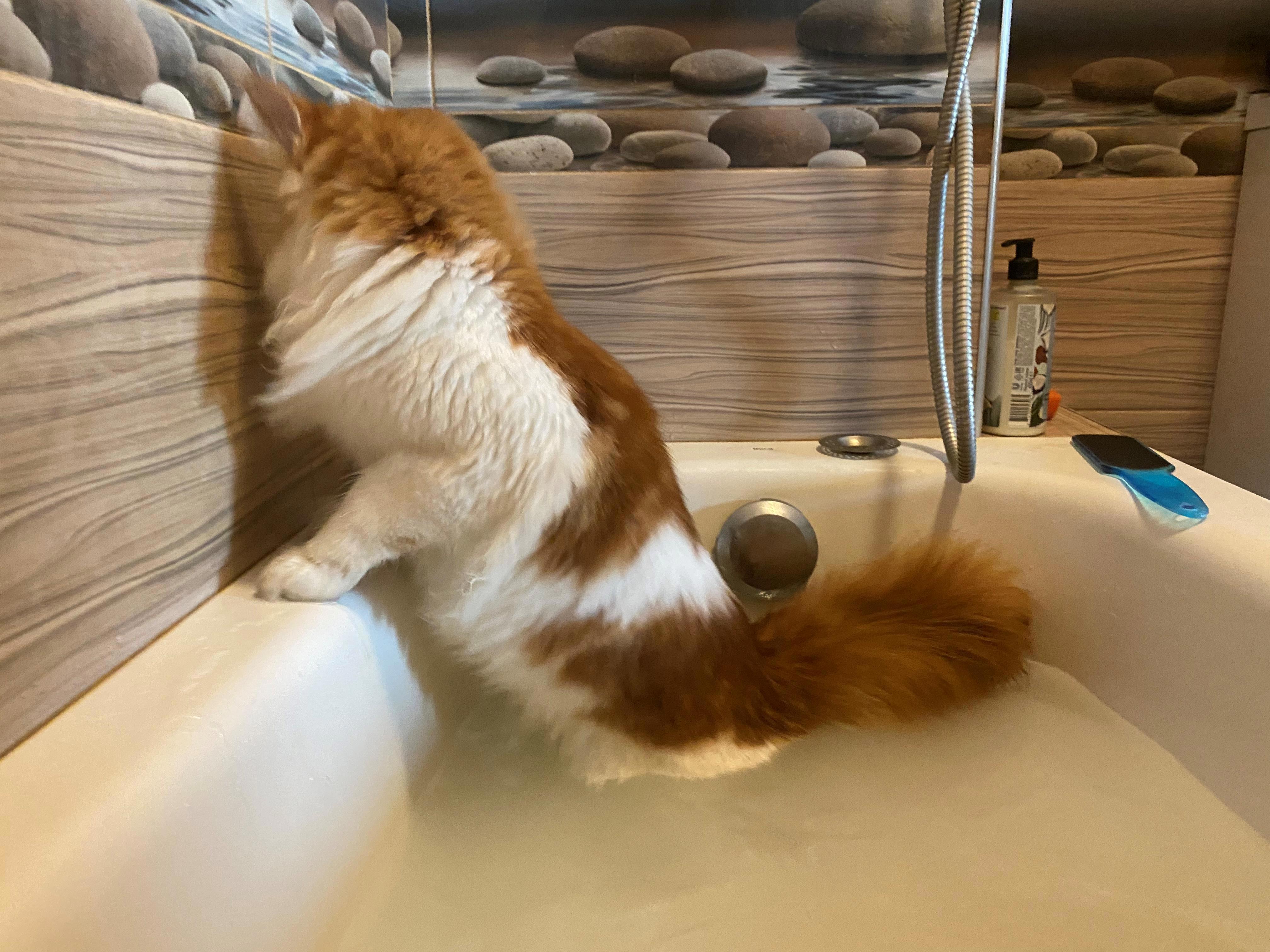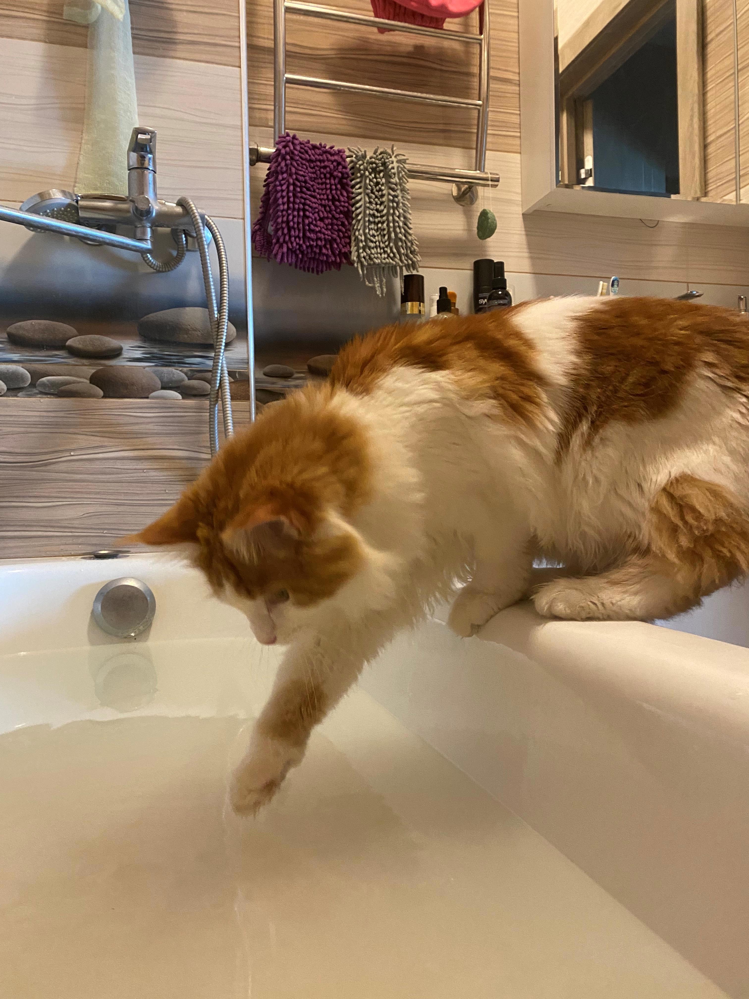 Автор: Анастасия ЖурбаКнопка воду не боится, но и не сильно любит. Играет с водой с удовольствием, а купаться не предпочитает, но иногда выбирать не приходится...