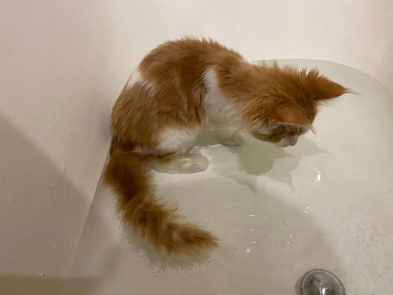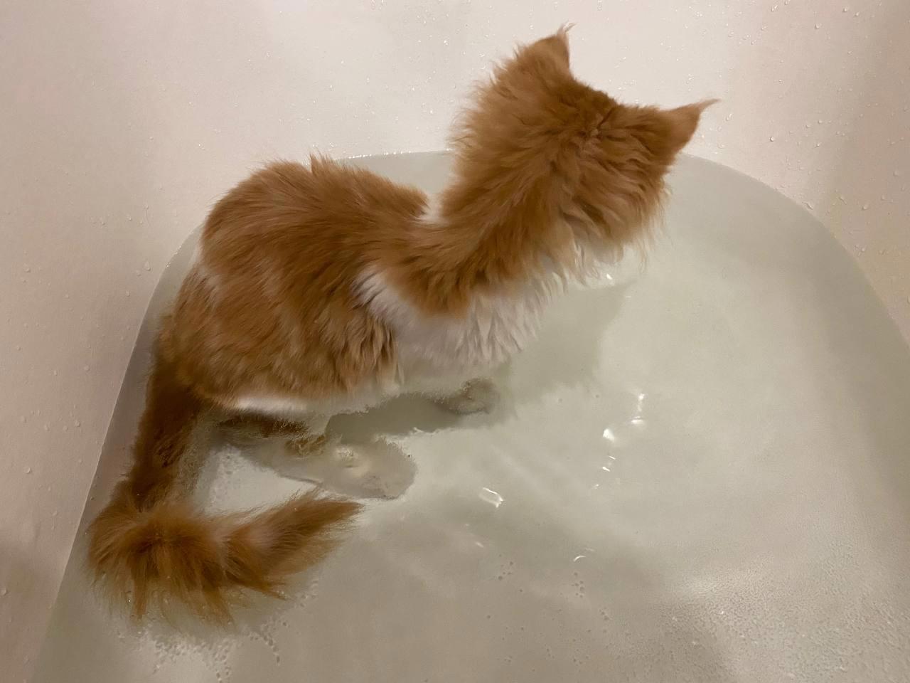 И напоследок - маленькая Кнопка отказывается выходить из ванны, которую я собираюсь принять. Здесь мы ещё в Петербурге.