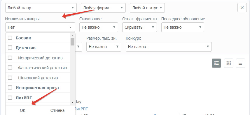 1) Появилась возможность исключить выбранные жанры в каталоге книг. Увы, пока только в полной версии сайта. Скоро добавим и в мобильную версию.