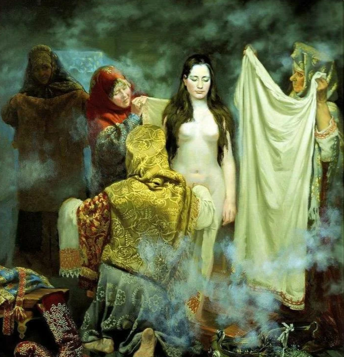 Не о какой девственности и непорочности, суженной, разговора даже тогда не велось. Это категории исключительно принадлежащие христианству (сейчас зачислите меня в неоязычники, но это не так). Чем больше у женщины здоровых детей, чем лучше она справляется с хозяйством и их воспитанием, тем больше её рейтинг) у жениховской братии. Думаете это странно? Совсем нет. Ведь из молодой неопытной не ясно ещё, что получится, да и родит ли она здоровое потомство ещё вопрос.
