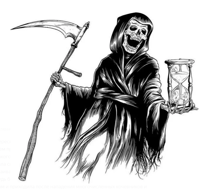 Интересно то, что наши с вами предки к смерти относились по иному. В нашем представлении это простоволосая женщина в белой одежде. Да, да никакого тебе страшного оскала, агрессивности и жути. Она просто делала свою работу, не в коем разе не подкарауливая бедняг за углом, устраивая засады, и стремясь сжульничать приблизив кончину какого-нибудь бедняги. Мы относились к ней спокойно ведь, она всегда была рядом и приходила после нападения многочисленных кочевников и других недоброжелателей зарившихся на наши территории, природных катаклизмов, эпидемий, неудачно закончившейся охоты и т.д. и т.п.