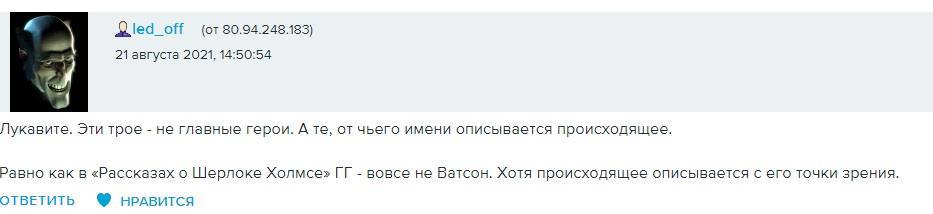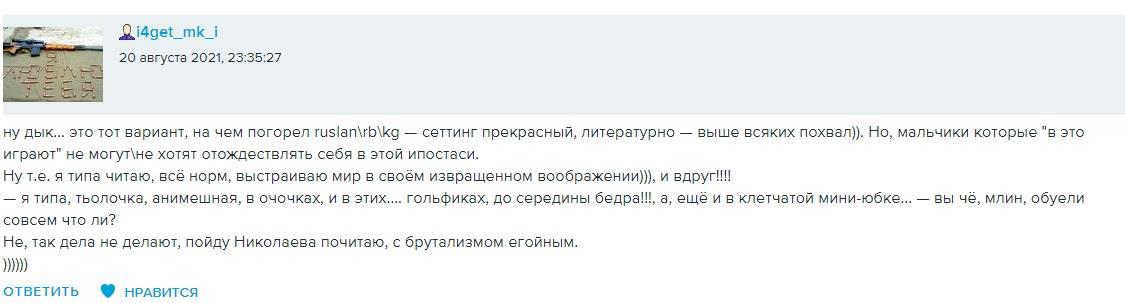 Если вот этим вот героям даже встречаются в сюжете девочки в очёчках и юбочках, и читатель испытывает тягу ассоциировать себя с ними, а не с протагонистами, то, как думаете, у кого проблемы? У автора или у читателя?...