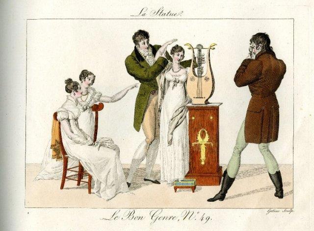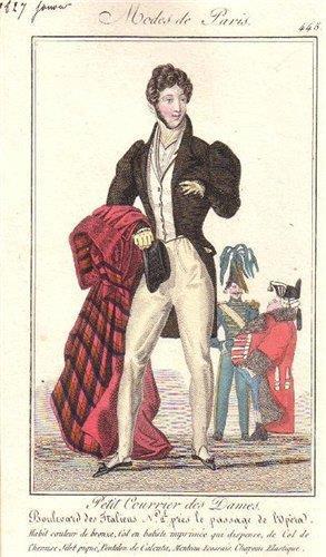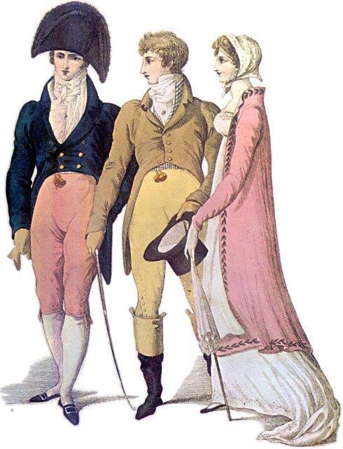 Первые пятнадцать лет XIX века вся Европа напоминала военный лагерь. Это время — настоящее царство мужчин. Влияние воинского духа на все стороны жизни были огромно, да и великая французская революция внесла огромный вклад в облик людей. Именно она, вдохновленная относительной простотой одежды английской деревни, установила формальную связь между костюмом и демократией.