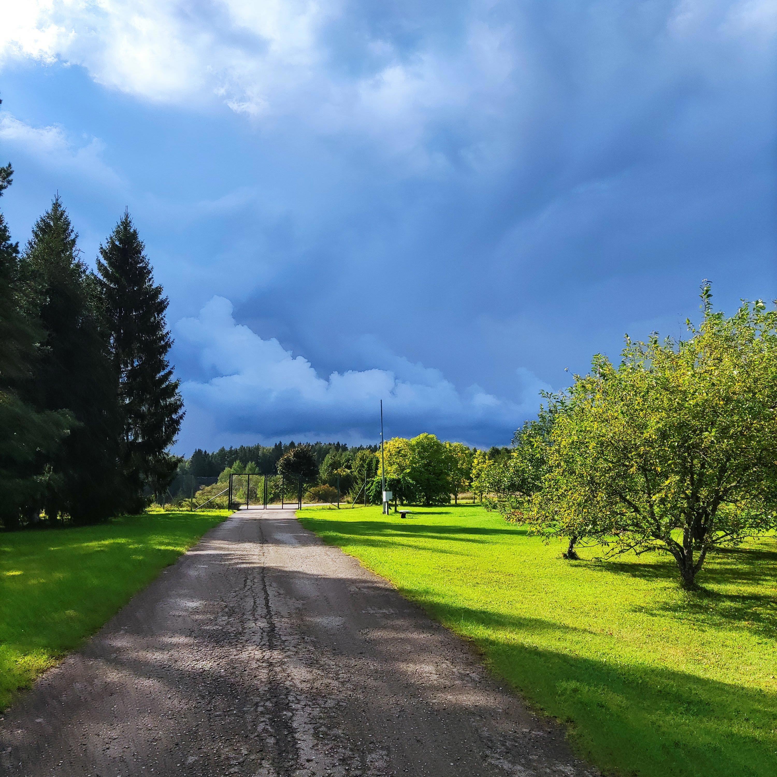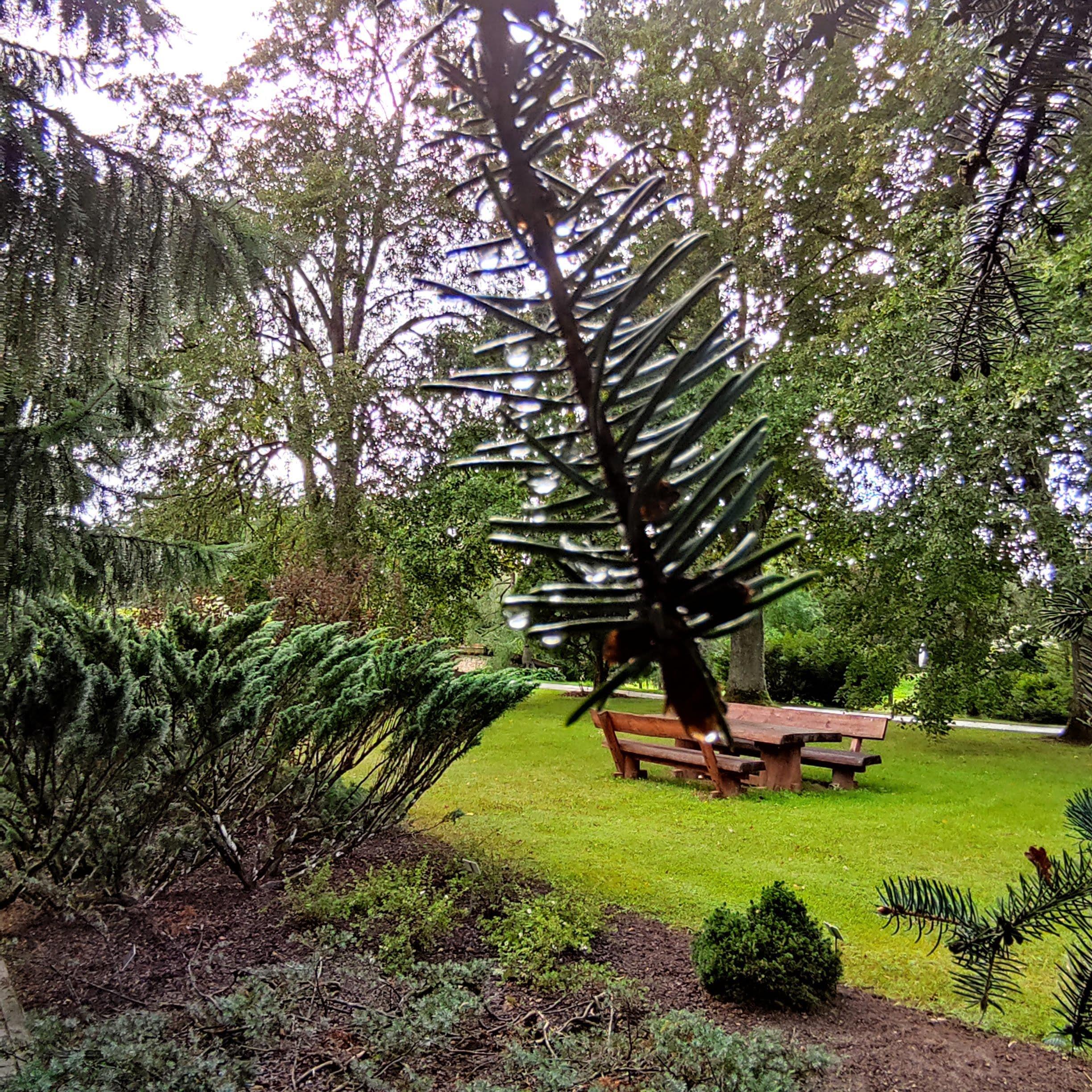 И вот едем мы, такие красивые и счастливые, а тучи ходят хмуро… И чем ближе мы к дендрарию, тем страшнее и страшнее, уже под проливным дождем пробираемся. «Ну, - думаю, - непорядок. Срочно надо погоду менять». Есть такое простое дело: выбираешь, где на небе просвет и расширяешь его до голубого небушка. Несложно совсем. Большая проблема в том ,что мне-то надо не где попало погоду сделать, а именно над дендрарием. А где он, я точно не знаю, так, примерно направление только. Но, слава навигатору, он исправно повороты показывает, справилась.