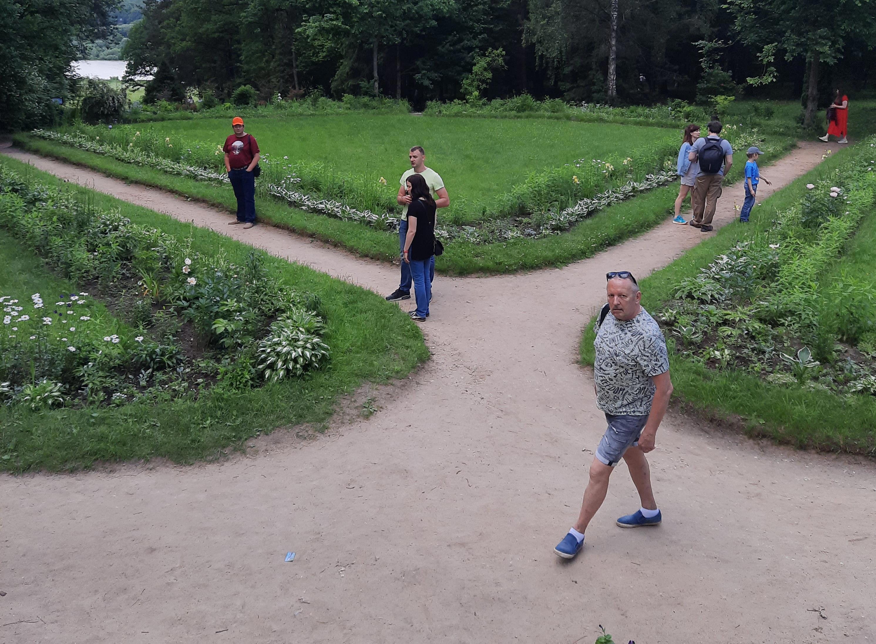 Одна из первых поездок в соседнюю с Москвой область. Красивые места, мужчины тянущие ножку [на фото]. Это усадьба для тех, кто любит искусство и просто красивые места.