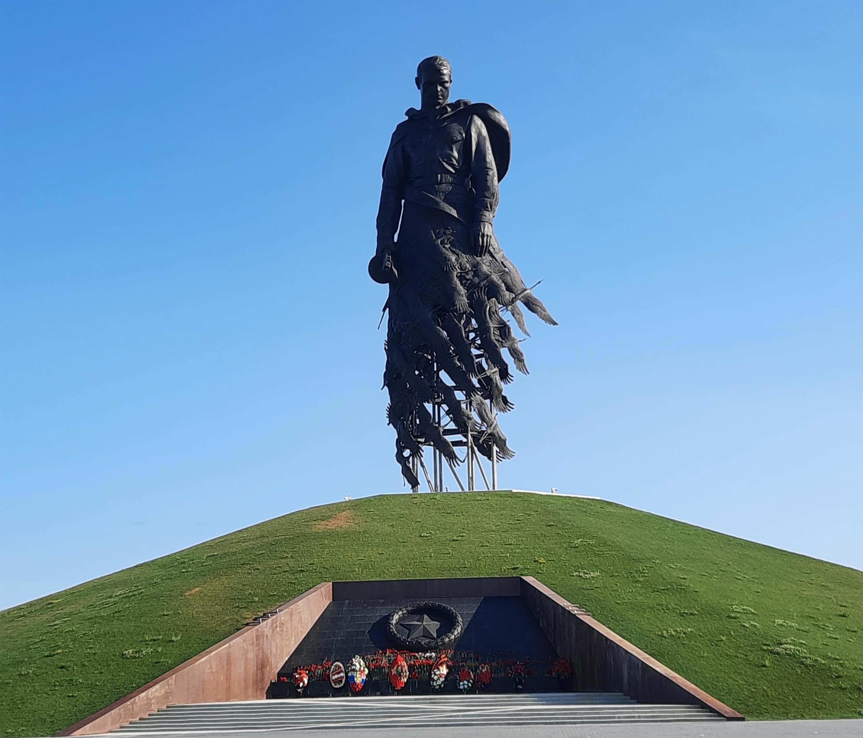 Город воинской славы с необычным памятником будто парящего в небе солдата.
