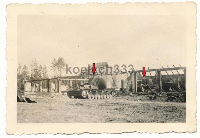 С другой стороны ангаров - еще сгоревшие машины, но соседний ангар целый. Очень похоже либо на высыпанные кумулятивные ПТАБы, либо на высыпанные ампулы АЖ либо на работу выливных баков с огнесмесью (ВАПы- выливные авиационные приборы) - когда мне читатель рассказал, что его дед на таком Ил-2 с баками летал - я не поверил, особенно когда было уточнено, что это было в конце войны. Сейчас приношу читателю извинения - да летали и выливали огнесмесь с бреющего. какими сорвиголовами надо быть, чтобы так работать - с трудом представляю.