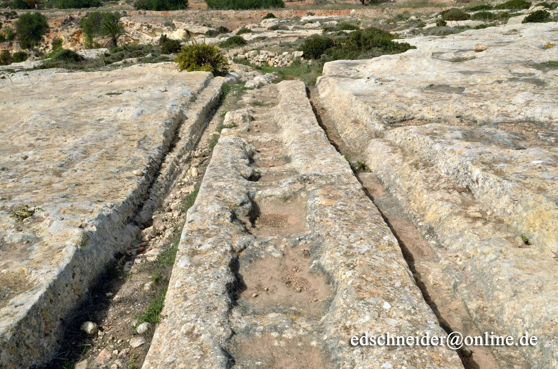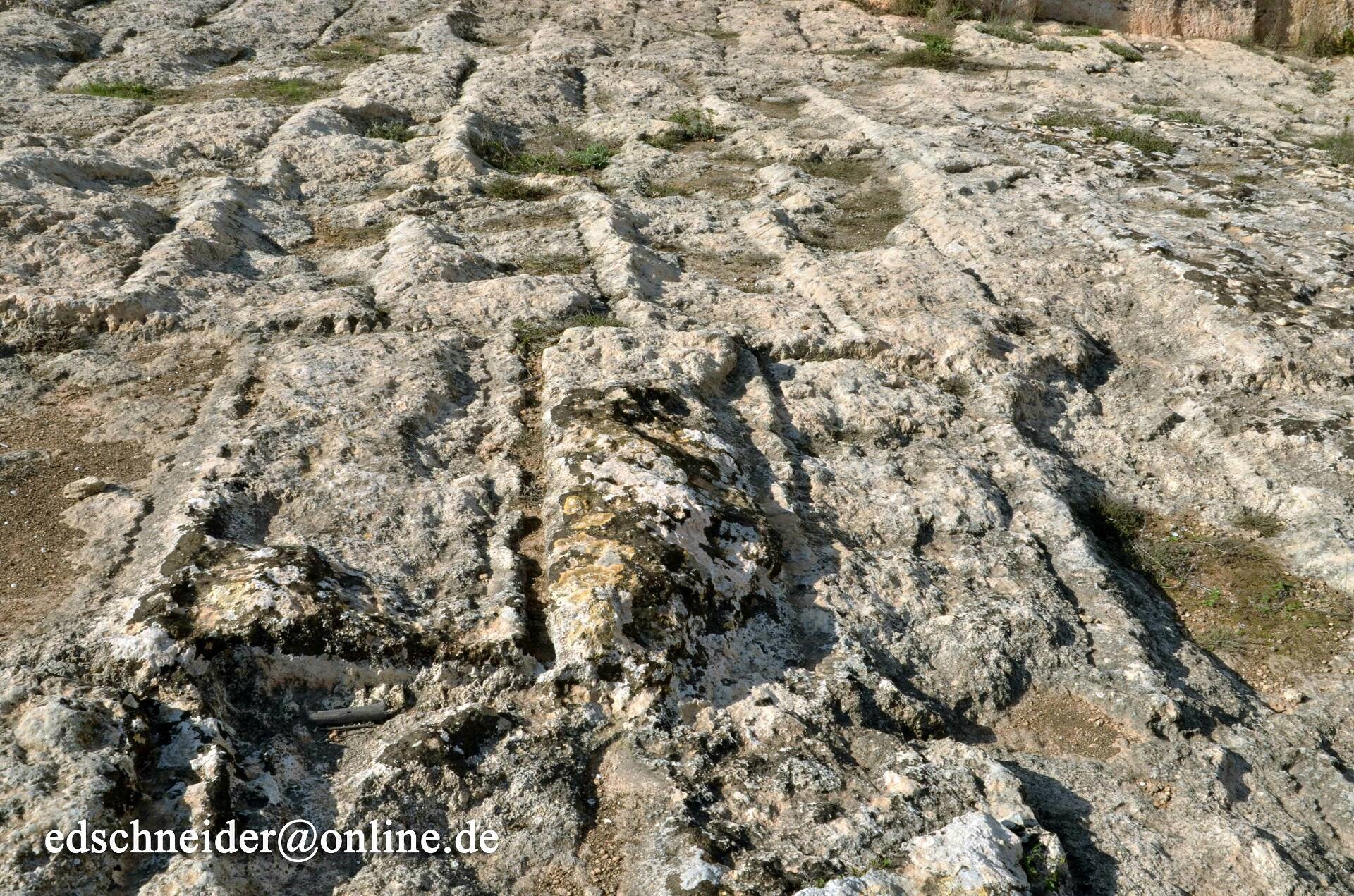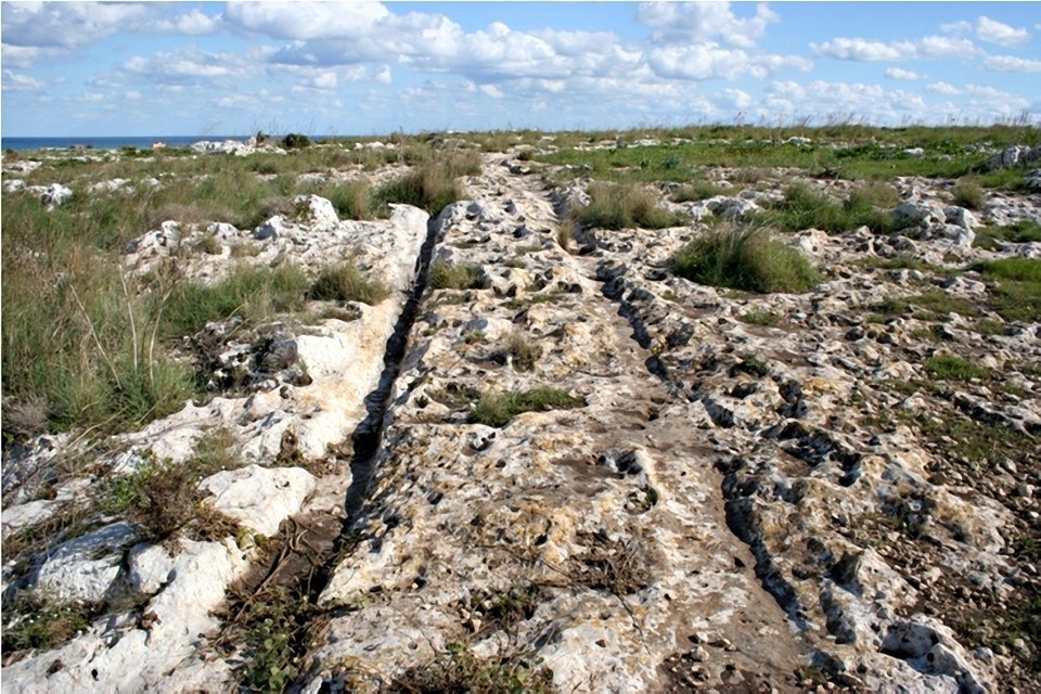 Ну так… следы на островах Мальта и Гоцо историки датировали 2 тысячами лет до н.э. Однако с аргументацией как-то не очень. Поневоле возникает подозрение, что цифра взята по датировке чего-то сопутствующего, то есть по-сути «с потолка». Ещё сильнее такое подозрение укрепляется, когда читаешь, что имеется две только основные версии того, от чего остались следы. Да, именно так, кроме предположения, что это следы неких транспортных средств, есть ещё одно – это следы водогонов систем ирригации… круто! Водогон шириной 10-40 мм. Нет, это – не серьёзно на мой взгляд, как и датировка в 2 т. лет до н.э. Кстати, другие не менее историки датируют следы на Мальте 4-5 тысячами лет до н.э. косвенно подтверждая, что цифры в обоих случаях взяты именно с потолка. Просто нет достаточного обоснования.