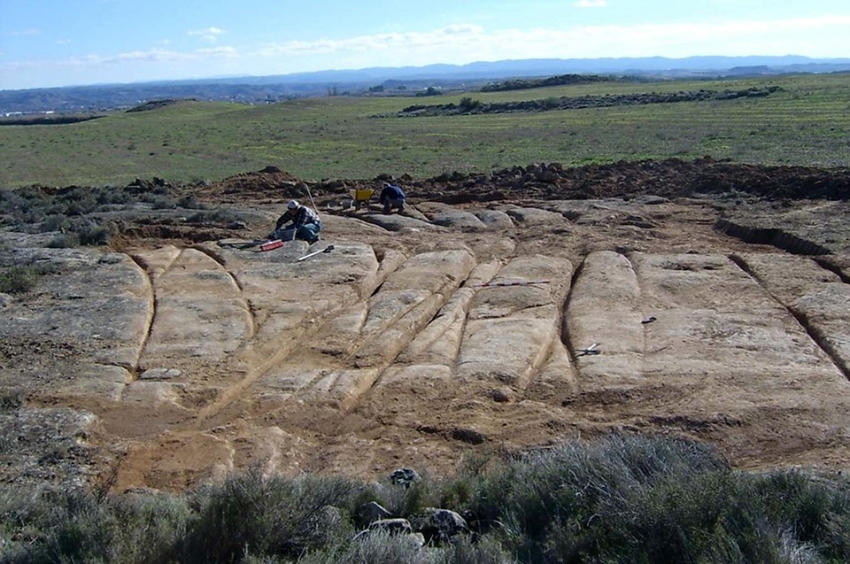 К сожалению исследований всех этих следов почти не ведётся. Хотя есть исключения. Вот фотографии из города Альканьис в Испании. Там проводили раскопки, чтобы колеи откопать, значит: