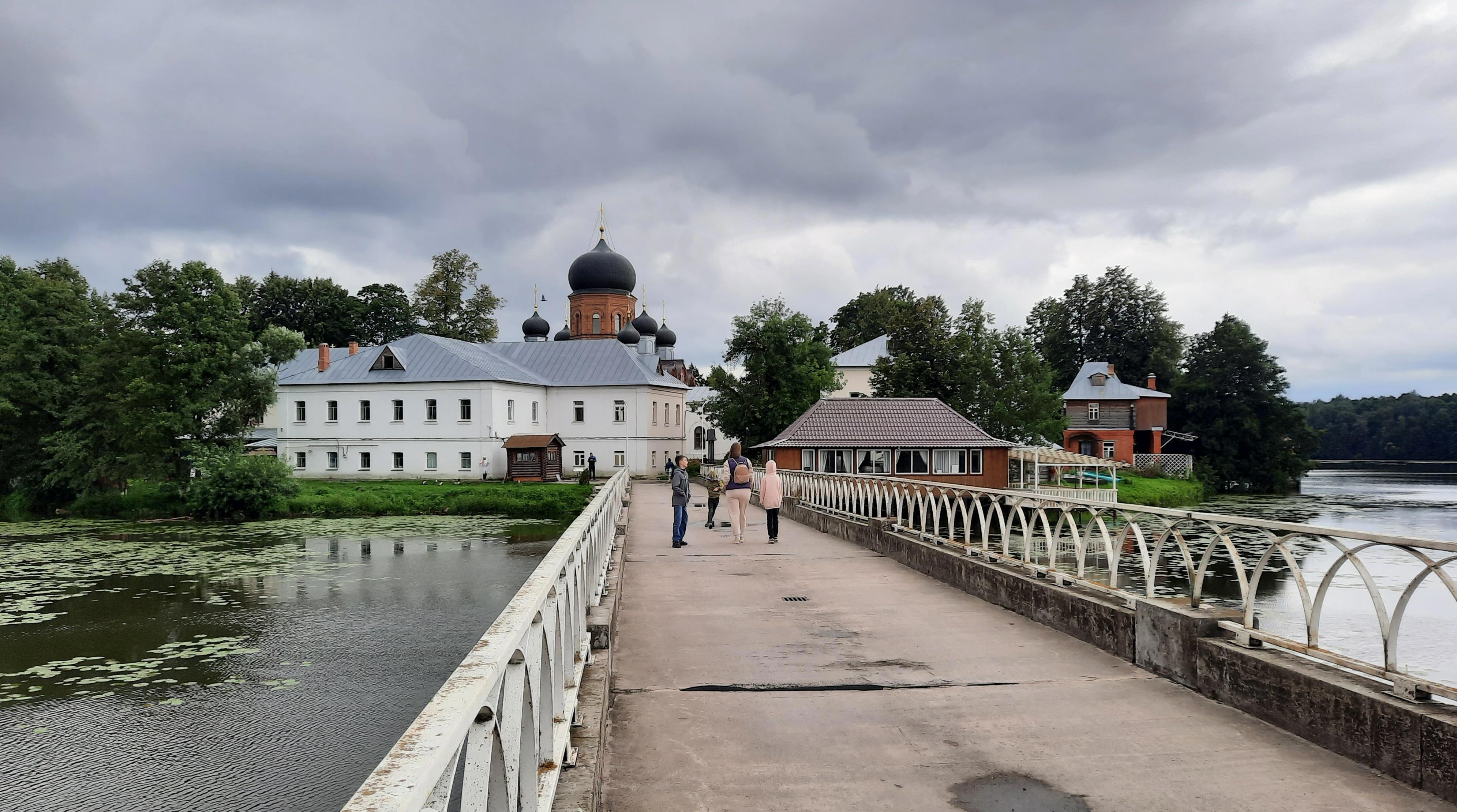 Если ты не религиозный человек, а я именно таким и являюсь, делать там особо нечего. Сам монастырь женский, стоит на островке посреди Введенского озера, которое раньше звалось Вятским. Организовали его ещё при Петре l. На острове построили храм и несколько построек с кельями. До монастыря можно добраться двумя способами и оба они в виде мостов. Один пешеходный деревянный, второй бетонный для автомобилей. Только на территорию машины не пускают, лишь с разрешения администрации монастыря, а это значит туда можно проехать спецтехника и патриарх Кирилл. По сути второй мост тоже пешеходный.