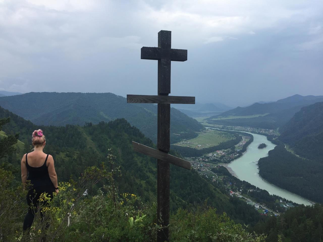 Крест установлен в 2011г. в честь 255-летия вхождения алтайского народа в состав Российского государства. Тропа на гору начинается от живописных ворот турбазы «Катунь» и через продуктовые ларечки ведёт прямиком к подошве.