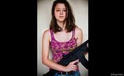 Возможно, это либеральная дрожь пробегает у меня по спине, когда он предлагает мне пройти тест-драйв. Но тренер, и тир в задней части магазина заняты. Я вижу как несколько женщин в фиолетовых наушниках, совместно мужьями и сыновьями выстраиваются на 10 директориях, что бы стрелять в плакаты с невменяемыми зомби по имени Боб и Стив. Я с облегчением берусь за съёмку не пытаясь играть и скрывать свои чувства. Я боюсь, я могла бы наслаждаться этой стрельбой.