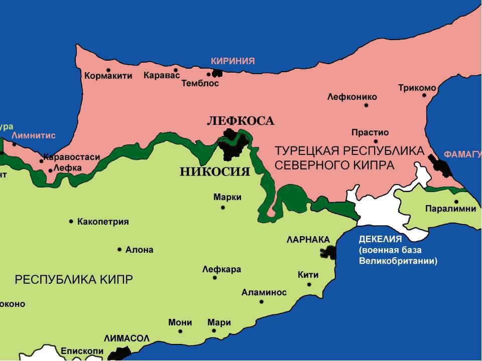 Республика Кипр была основана в 1960 году и, согласно ее конституции, была двухобщинным государством. Кипр получил независимость от Великобритании, которая колонизировала остров ещё в 1878 году. Это интересный риторический момент: Великобритания захватила у Турции Кипр под предлогом «необходимости защиты Турции от России, в виду вторжения русских войск на Балканы и основания там балканских государств». На протяжении последующих 80 лет Великобритания превратила Кипр в свою главную базу в восточном Средиземноморье и взяла на себя всю ответственность за мир и гражданское спокойствие на острове. Даже уходя, Великобритания оставила за собой две военные базы, расположенные на полуострове Акротири и рядом с поселком Декелия.