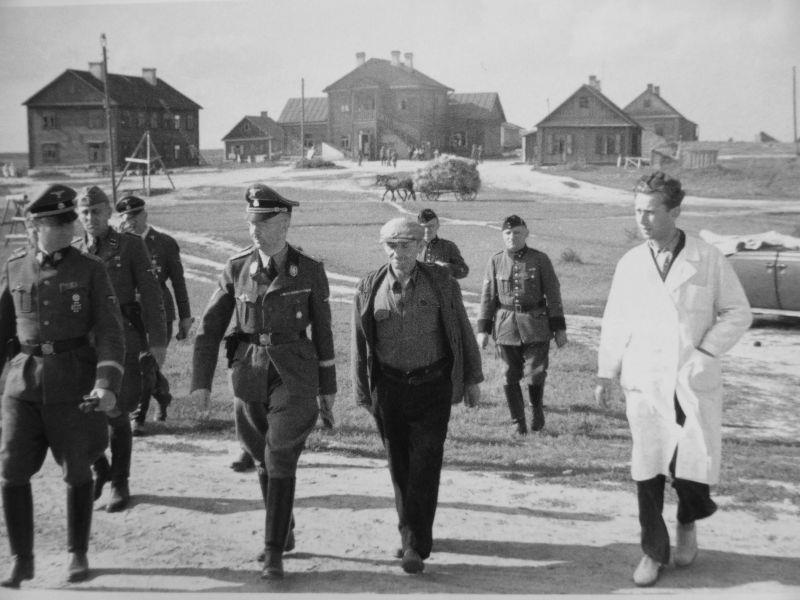 Рейхсфюрер СС Генрих Гиммлер инспектирует психиатрическую больницу в деревне Новинки под Минском.