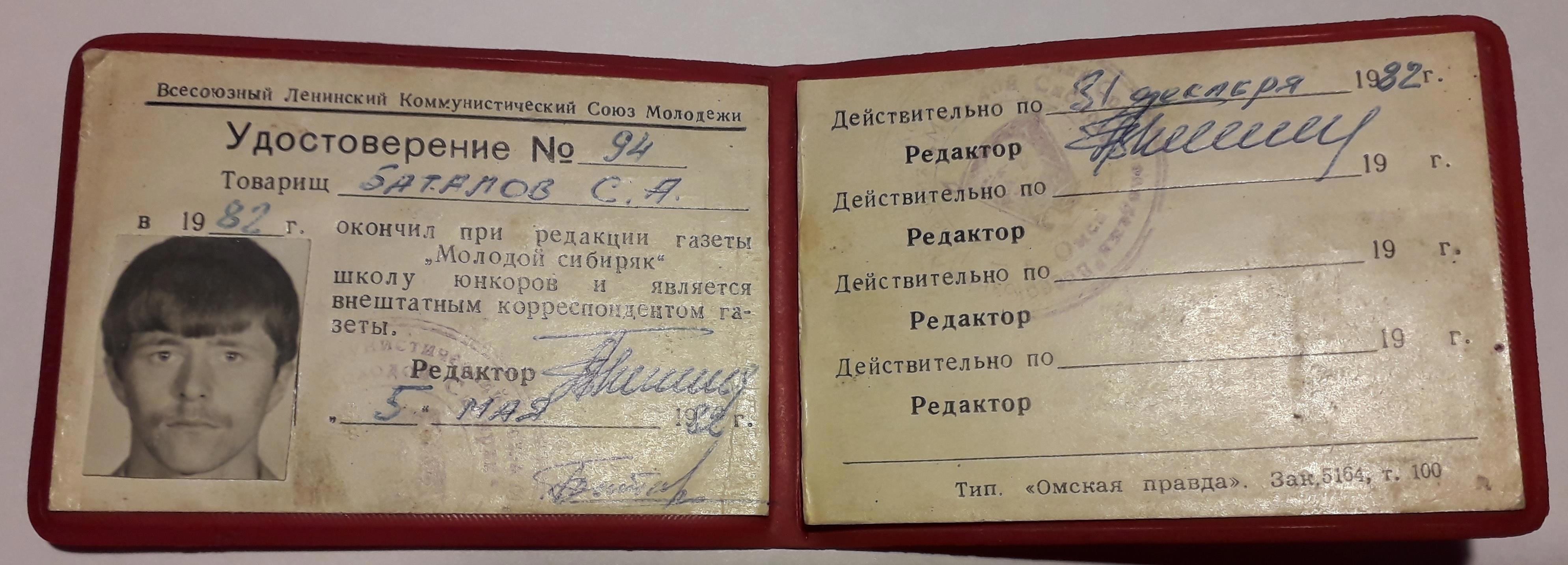5 мая, в советский День печати я был среди тех четырёх юнкоров, которым на сцене актового зала торжественно вручили удостоверение внештатного журналиста газеты "Молодой Сибиряк"