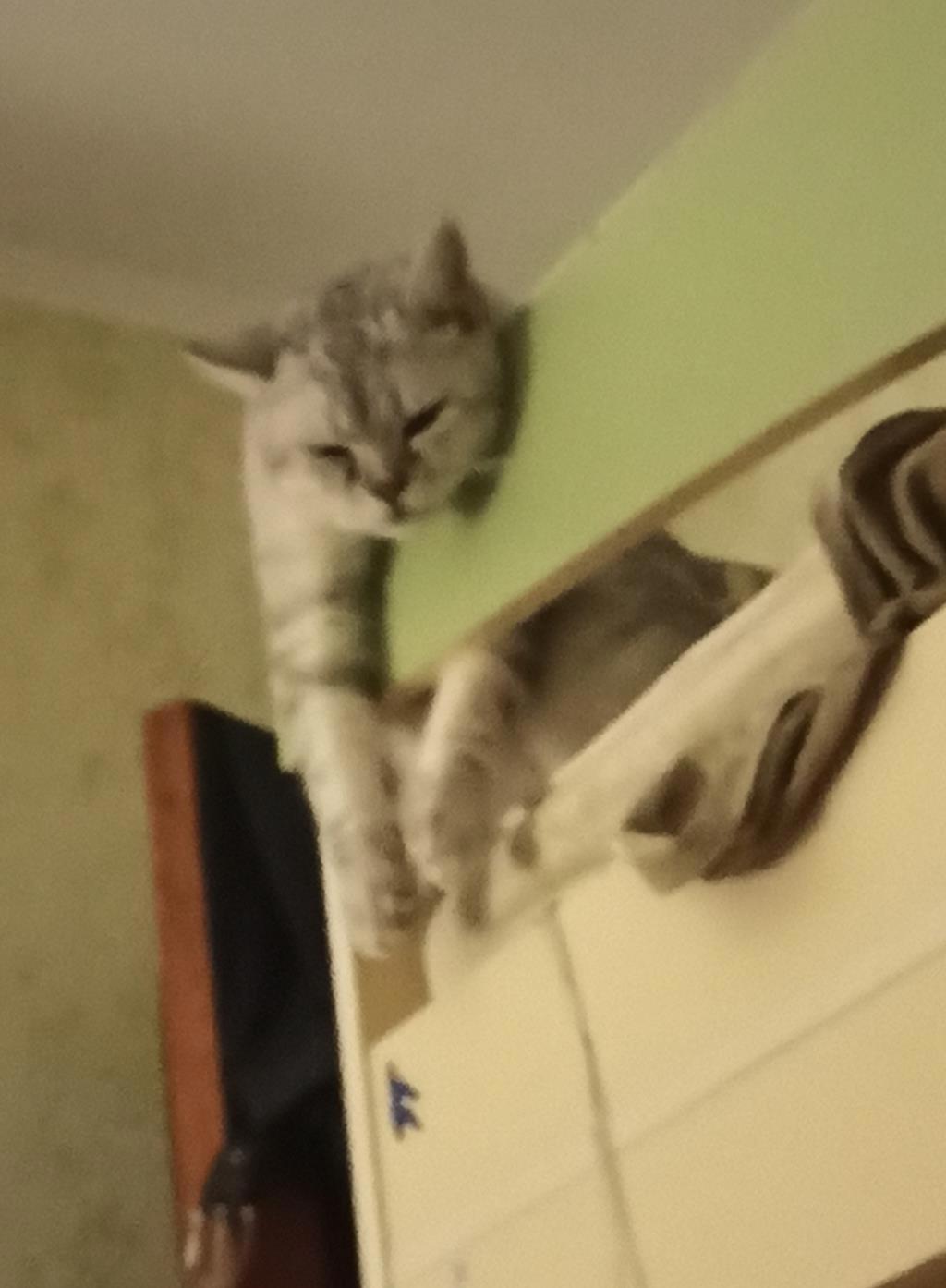 Место на втором этаже стало любимым. Настолько, что он даже засыпает в такой позе. Вот уж чего точно не ждёшь)))