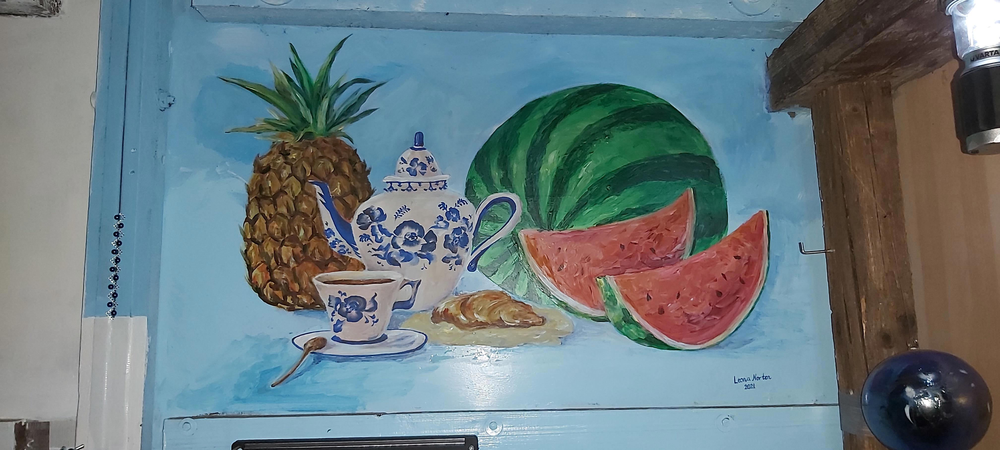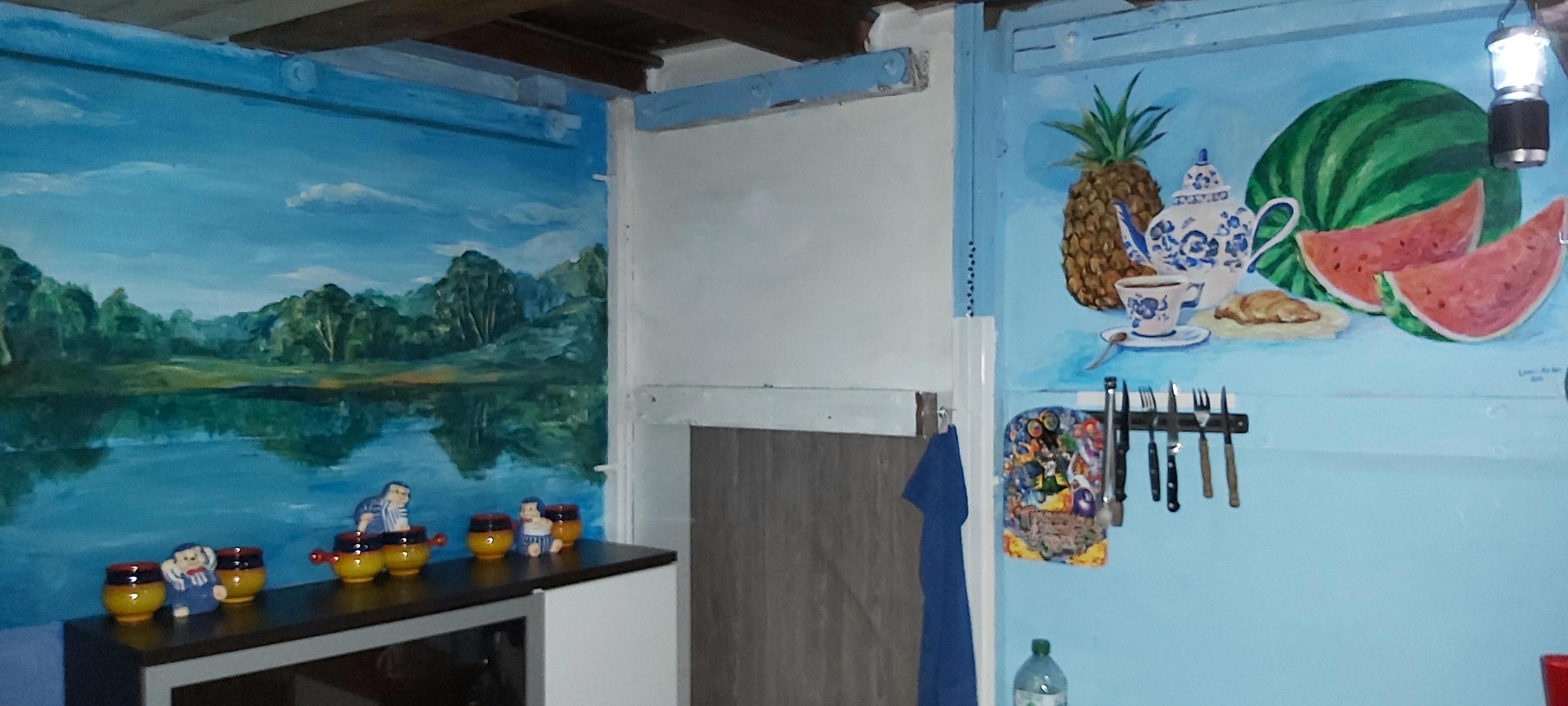 Взяла в рабство Елеонору, и теперь у меня сарай музей. Вчера весь день бедная подруга рисовала мои хотелки. А я так крышу и не сделала, так как погода угрожала испортиться, эх.