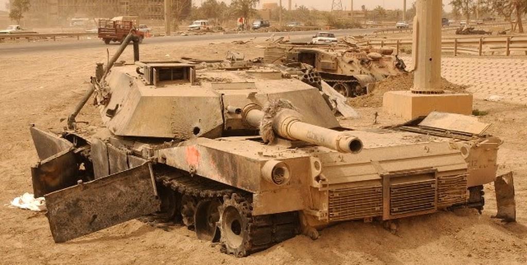 Немецкий «Леопард 2» тоже стартовал с 54 тонн. К настоящему моменту масса достигла 70 тонн. Очень долго гуляли байки про неуязвимость «Леопарда 2». И вроде бы всё было хорошо, пока они были в Югославии. Но там в него только из пулемётов и стреляли… Потом немецкие «Леопард 2» поехали на восток и потихоньку пошли потери, которые в Сирии достигли серьёзных цифр. А всё просто – на востоке, в Ираке и Сирии против них использовали очень неплохие гранатомёты американского производства и нашего. Вот фото горелых «Леопардов 2»: