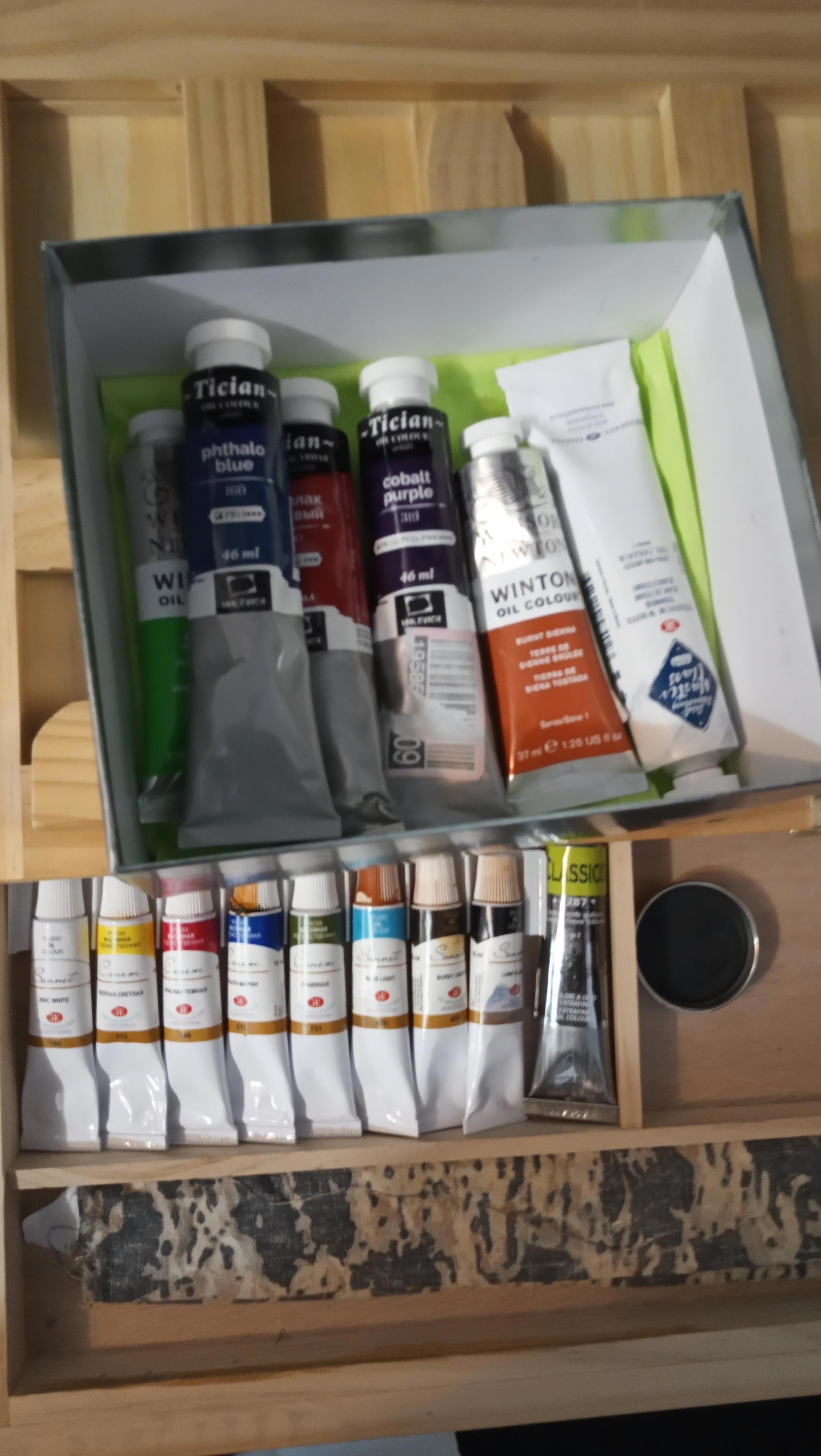 А потом по акции мне досталось немножко маленьких туб Winsor&Newton в Красном Карандаше.