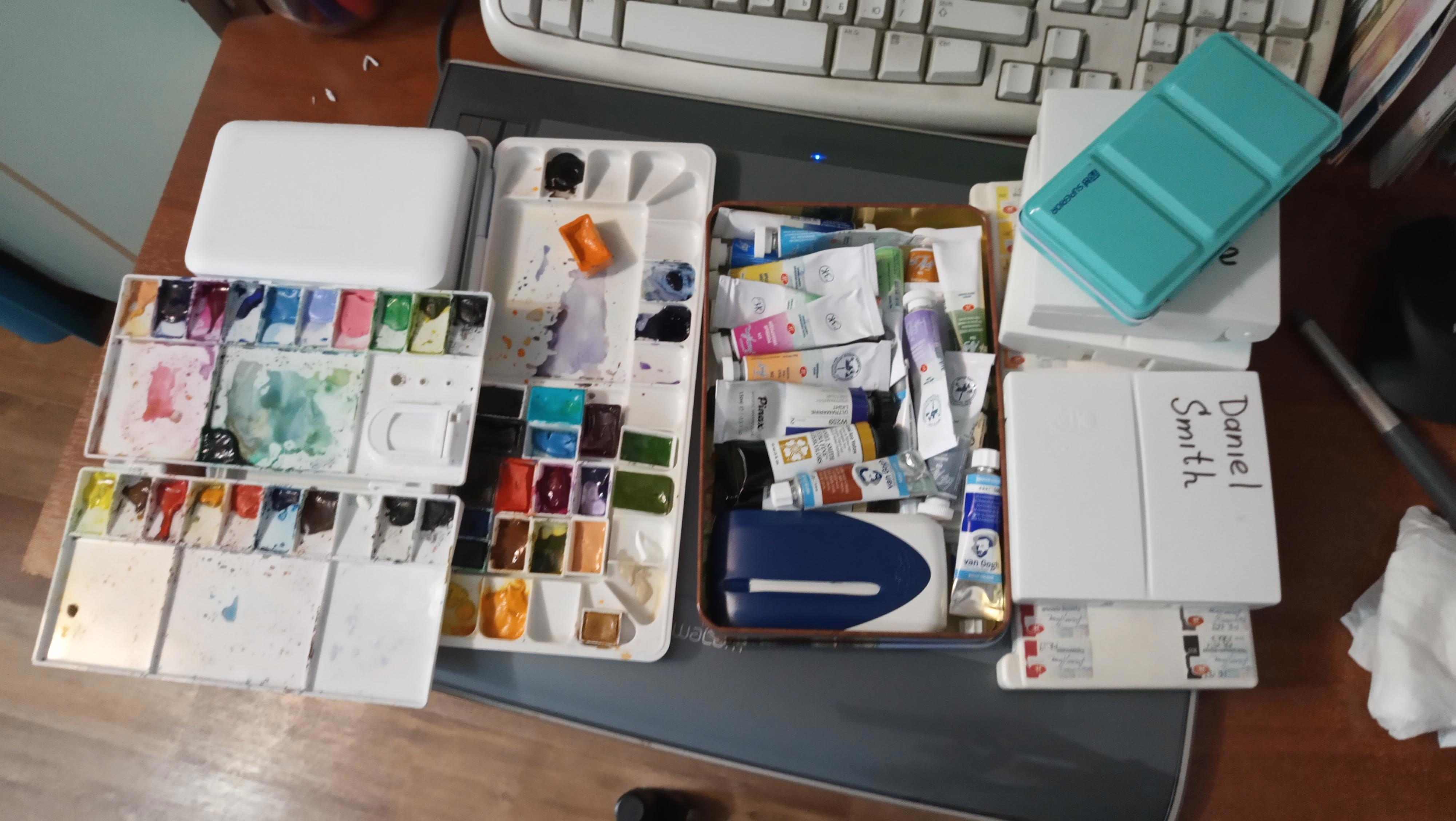 Возможно, в футляр на 8 полукювет я потихоньку 8 цветов Проф подберу. Интересно же. Но это не ближайшего времени дело. Чай, есть чем рисовать.