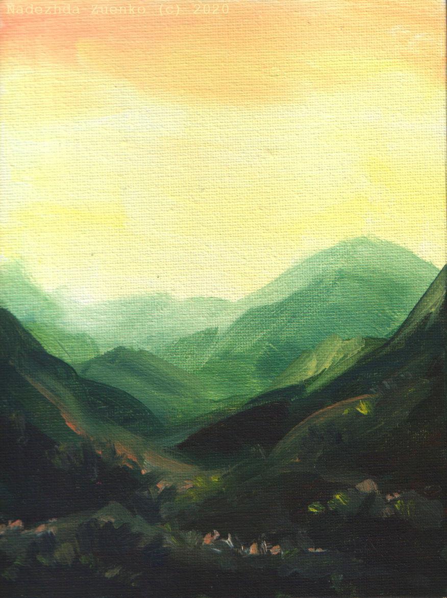 Кто-то говорит, что маслом работать проще, чем акварелью. Допускаю, что при привычке так оно и есть. Я слишком мало имела с ним дела. Для меня утомительно то, что оно сильно пачкается, кисти не прополаскиваются по-нормальному, а скорее протираются, сохнет всё это добро не одну неделю и вообще дольше собирается-разбирается, чем рисуется ).