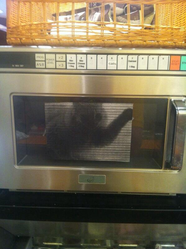 Парня уволили с работы за то, что он приклеил фото кота на микроволновку.
