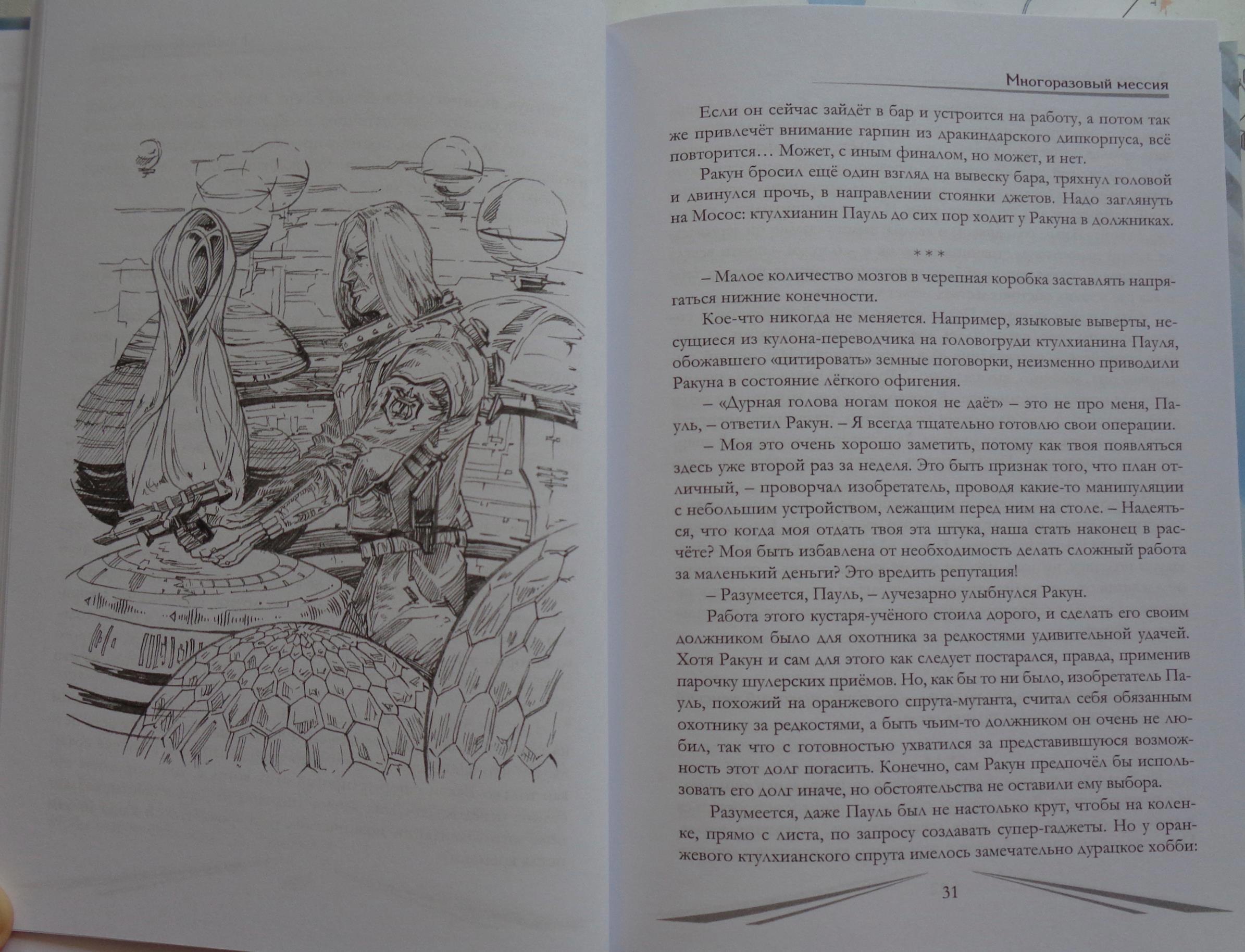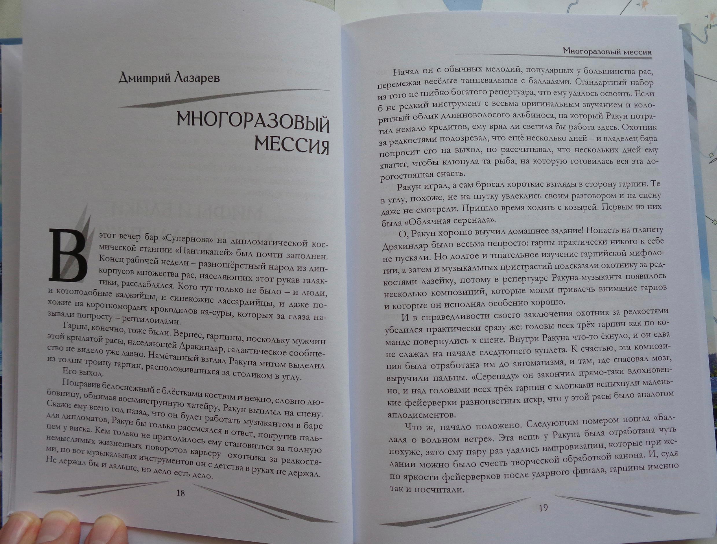 Автор: Лазарев ДмитрийВот, наконец, добрался до меня этот сборник «Фантастика без границ. Запределье» с очень сильным составом, куда пробился и мой рассказ «Многоразовый мессия» про космического авантюриста Ракуна. Героиня рассказа гарпина (это не имя, а биологический вид), даже на обложку попала. А герой – Ракун попал на иллюстрацию внутри сборника. Большое спасибо составителю, художнику, и всем, благодаря кому этот сборник с действительно непростой судьбой наконец вышел!