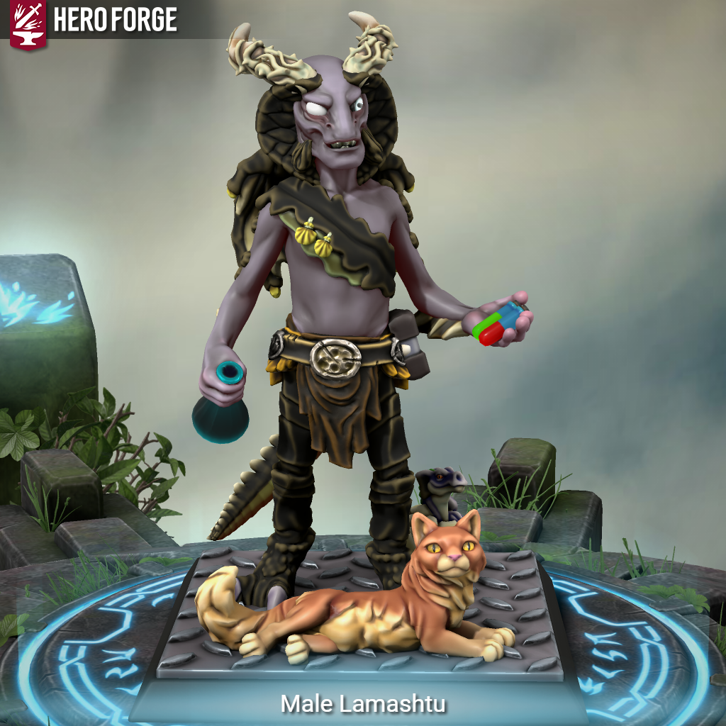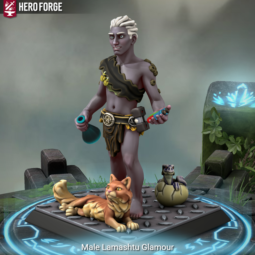 «Гламурный» облик почти неотличим от человеческого. За спиной... хм-м... вероятно, детеныш-ламашту, выращенный в лаборатории. У него тоже проблемы, взрослый ламашту обеспокоен, но не сдается.