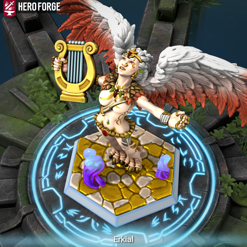 Вот такая милашка у меня получилась. В своем природном облике (ну, почти — на самом деле у ламашт нет крыльев за спиной, это их руки могут трансформироваться в крылья) и временном человекоподобном.