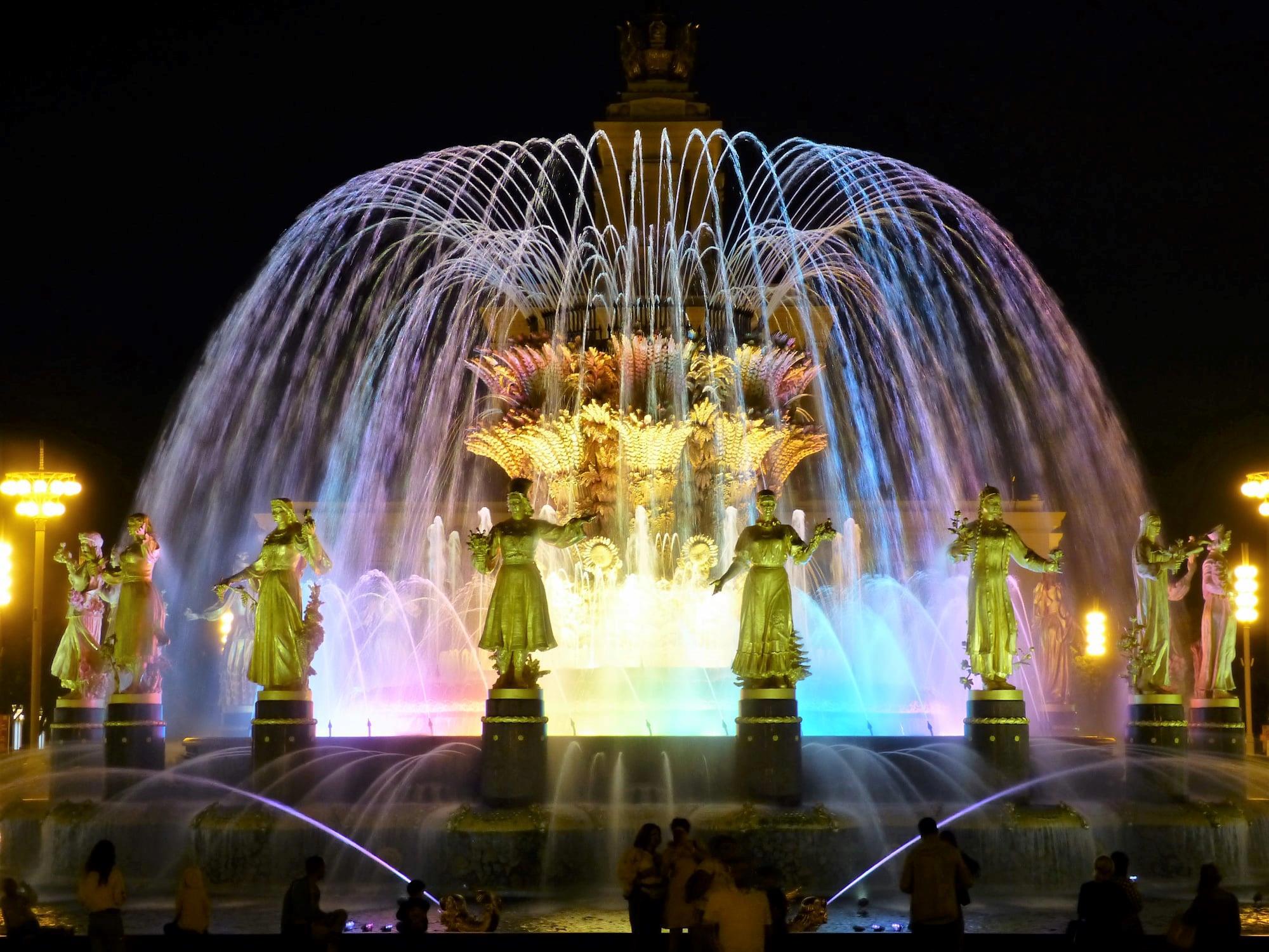 А потом, когда солнце закатилось за горизонт, включили подсветку фонтанов.