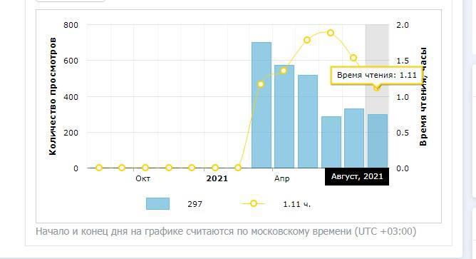 Одиннадцать часов чтения и это пик за этот месяц, в чем же дело? В иллюстрациях. Приглядитесь к первому скриншоту профиля — их там более трех сотен. Писателем этот пользователь не является.