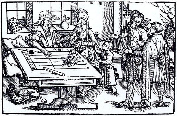 Расчётная доска. Средневековая гравюра.