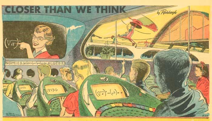 Не так давно стало модным еще одно направление – ретрофутуризм – изучение прогнозов, сделанных 50-100 лет назад. Давайте проверим вместе, что из комиксов знаменитого американского художника-футуриста Артура Радебо сегодня уже сбылось. Например, дистанционное обучение – гениальное предсказание:
