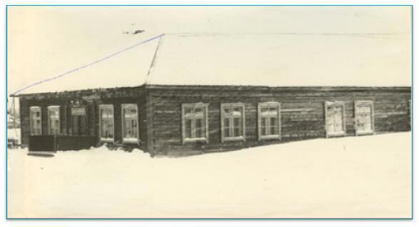 Леспромхозовский посёлок. Зима. Деревянная старая школа-барак.