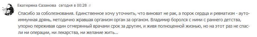 В общем, хотя мы с Владимиром лично и не были знакомы, но мои соболезнования семье.